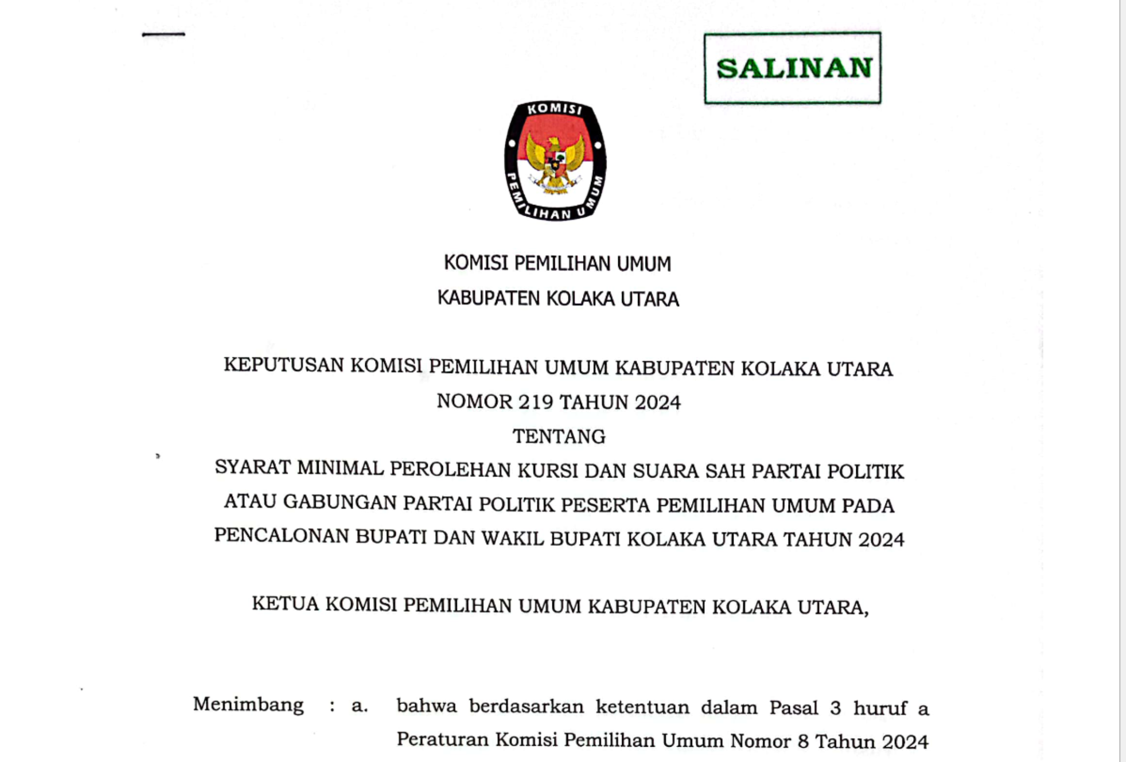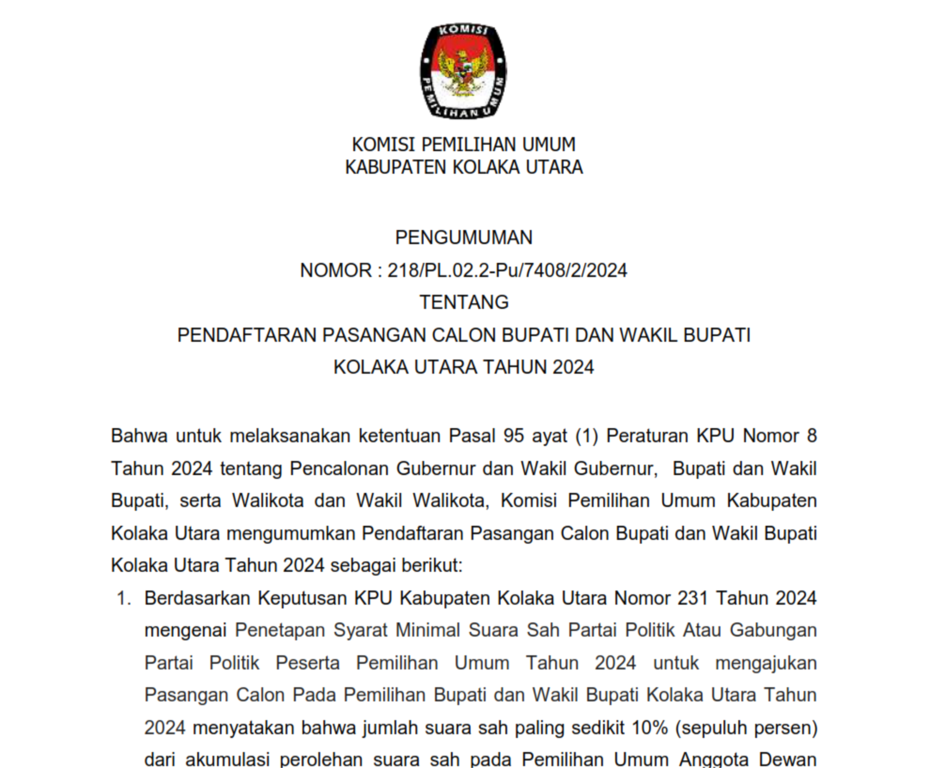 Untuk masyarakat Kabupaten Kolaka Utara yang memenuhi syarat di bawah :